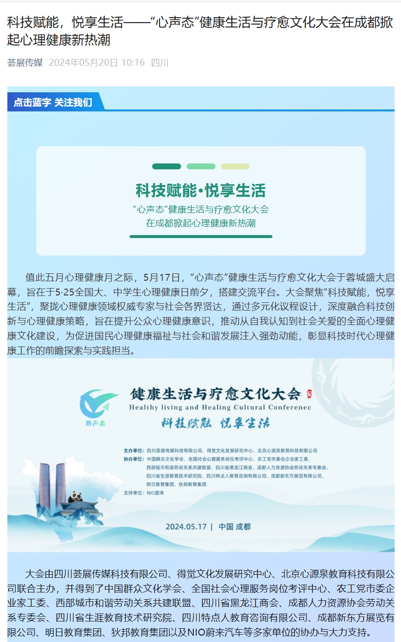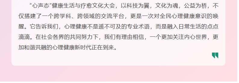 科技赋能,悦享生活——“心声态”健康生活与疗愈文化大会在成都掀起心理健康新热潮
