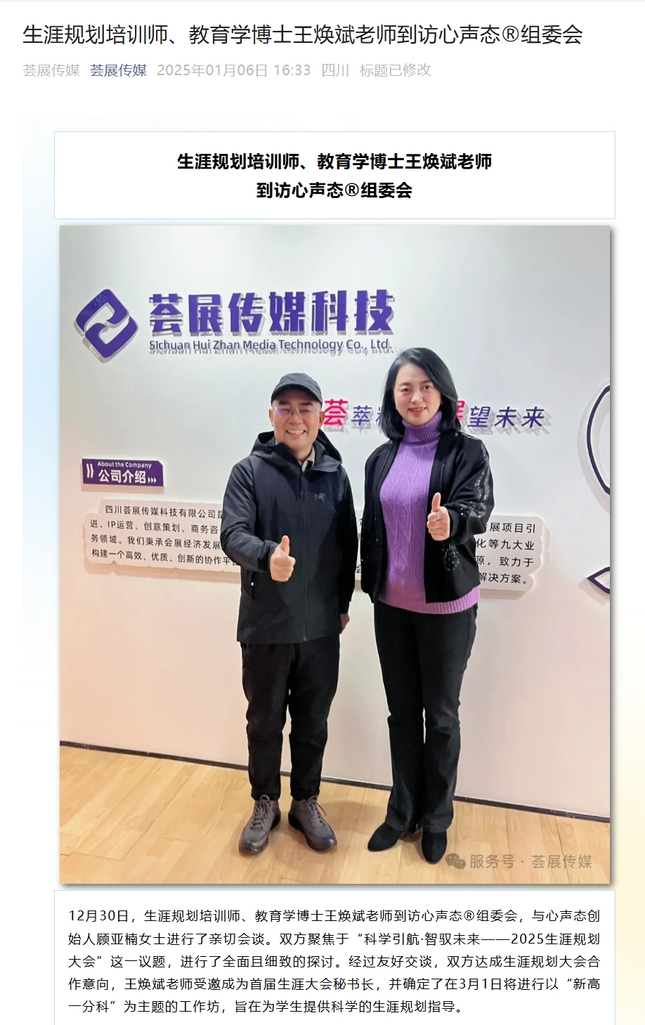 生涯规划培训师、教育学博士王焕斌老师到访心声态®组委会
